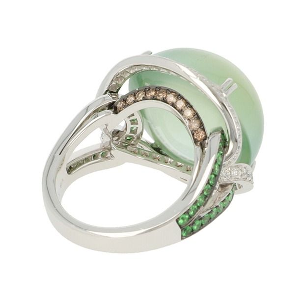 Unique Piece | White Gold Ring | Diamonds - Prehnite - Tsavorite