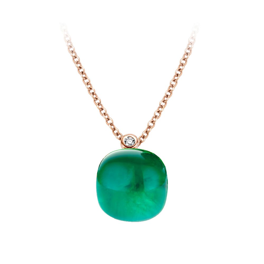 Deze Mini Sweety hanger is gemaakt in 18 karaat roségoud en bezet met smaragd en parelmoer. Smaragd is de geboortesteen van mei.