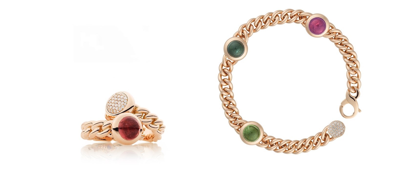 Classico is onze interpretatie van een klassieke Italiaanse armband. Het regelmatige ritme van de gouden schakels wordt speels afgewisseld door sierlijk ronde zetkastjes met toermalijn in toverkleuren.