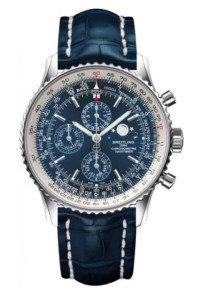 Deze ‘Grande Complication’ chronograaf combineert de beroemde cirkelvormige rekenlineaal van de luchtvaart met een ‘schrikkeljaar kalender’, die slechts één keer in de vier jaar gecorrigeerd moet worden, dus na 1461 dagen. Het zeer verfijnde uurwerk bestaat uit meer dan 450 delen.De datum, dag en maand worden weergegeven op 3 zones, aangevuld met een maanaanduiding, die afsteekt tegen de blauwe achtergrond.