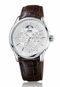 Dit horloge beschikt over een retrograde seconde aanduiding op 6 uur, een retrograde tweede 24 uurs tijdsaanduiding links, retrograde dagen van de week op 12 uur en retrograde datum rechts op de wijzerplaat. Daarbij is boven de secondewijzer een venster waaronder de maan laat zien in welke fase deze zich bevindt en kan men onder de weekdagaanduiding zien of het dag of nacht is. Boven dit alles draaien de wijzers van de tijd hun gebruikelijke rondjes.