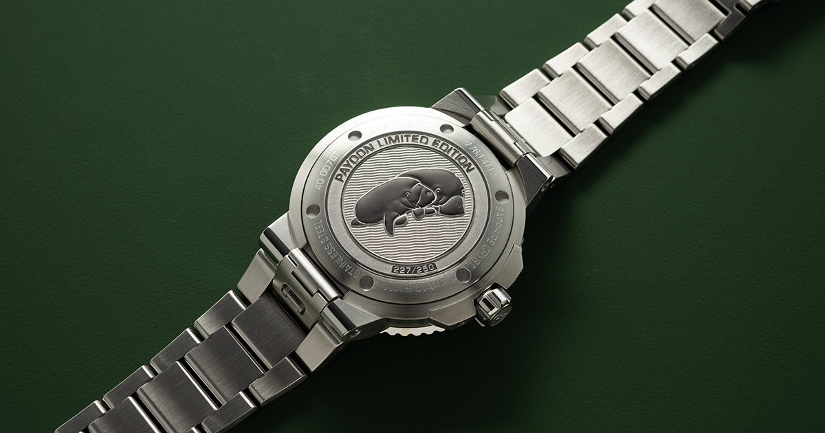 Het groen van de wijzerplaat is geïnspireerd op de kleur van het water van Ko Libong en de bezel op de huidskleur van de dugong. Met dit horloge helpt Oris diverse organisaties die proberen deze mooie dieren te beschermen.