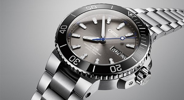 Zoals velen al weten is de Aquis lijn van Oris al jaar en dag mateloos populair bij de horloge dragers en de liefhebbers. Het no-nonsens duik horloge van Oris met de karakteristieke ronde vorm en prachtige wijzerplaten. Na ruim 50 jaar duikhistorie heeft Oris zijn geliefde Aquis model aangepast op een manier waardoor het horloge het zelfde uiterlijk houd, maar makkelijker draagbaar word voor de gemiddelde pols, zo zijn de wijzers licht boller en scherper gemaakt en de bescherming voor de kroon is aangepast waardoor het een strakker geheel word. Naast dat o.a. de lunette tegenwoordig van keramiek is, hebben zij ook de kastpoten minder fors gemaakt en de band iets minder vol. Zo word het horloge makkelijker draagbaar bij bijvoorbeeld een pak, wat we natuurlijk steeds meer zien gebeuren bij duikhorloges. Ondanks deze cosmetische ingrepen heeft het horloge nog exact het zelfde gevoel en uitstraling als dat hij altijd gehad heeft. Ook staat er bij het nieuwe model “Aquis” op de wijzerplaat, dit omdat zij vinden dat het horloge uitgegroeid is tot een icoon en dat moet natuurlijk mee gedragen worden op de wijzerplaat.