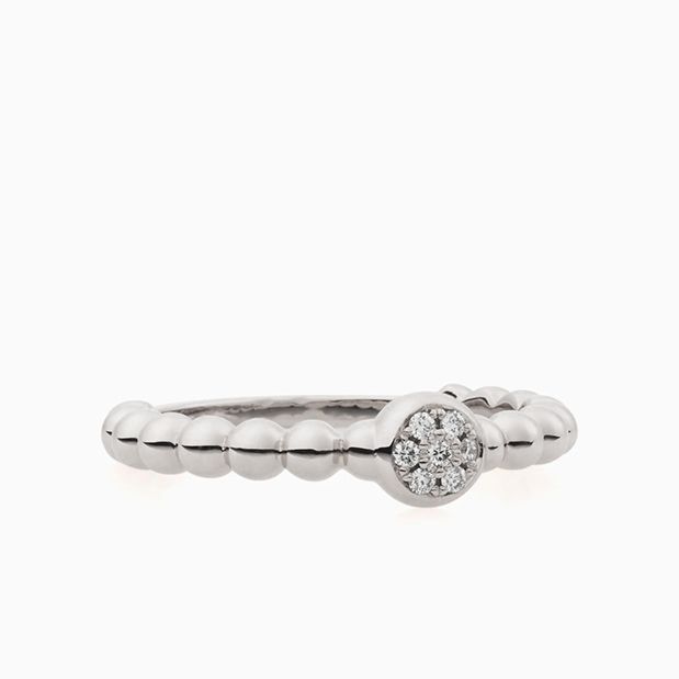 Mini Stardust Smartie in een gouden kralenring. Net als alle sieraden uit de Joy-collectie kan deze ring worden bezet met diamanten of zwarte saffieren.