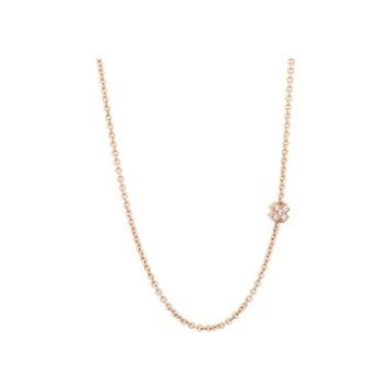Fijn en verfijnd kort collier met het Bron-kusje asymetrisch ertussen geplaatst. Enkelzijdig bezet met diamant. Kan ook met een hanger eraan gedragen worden.