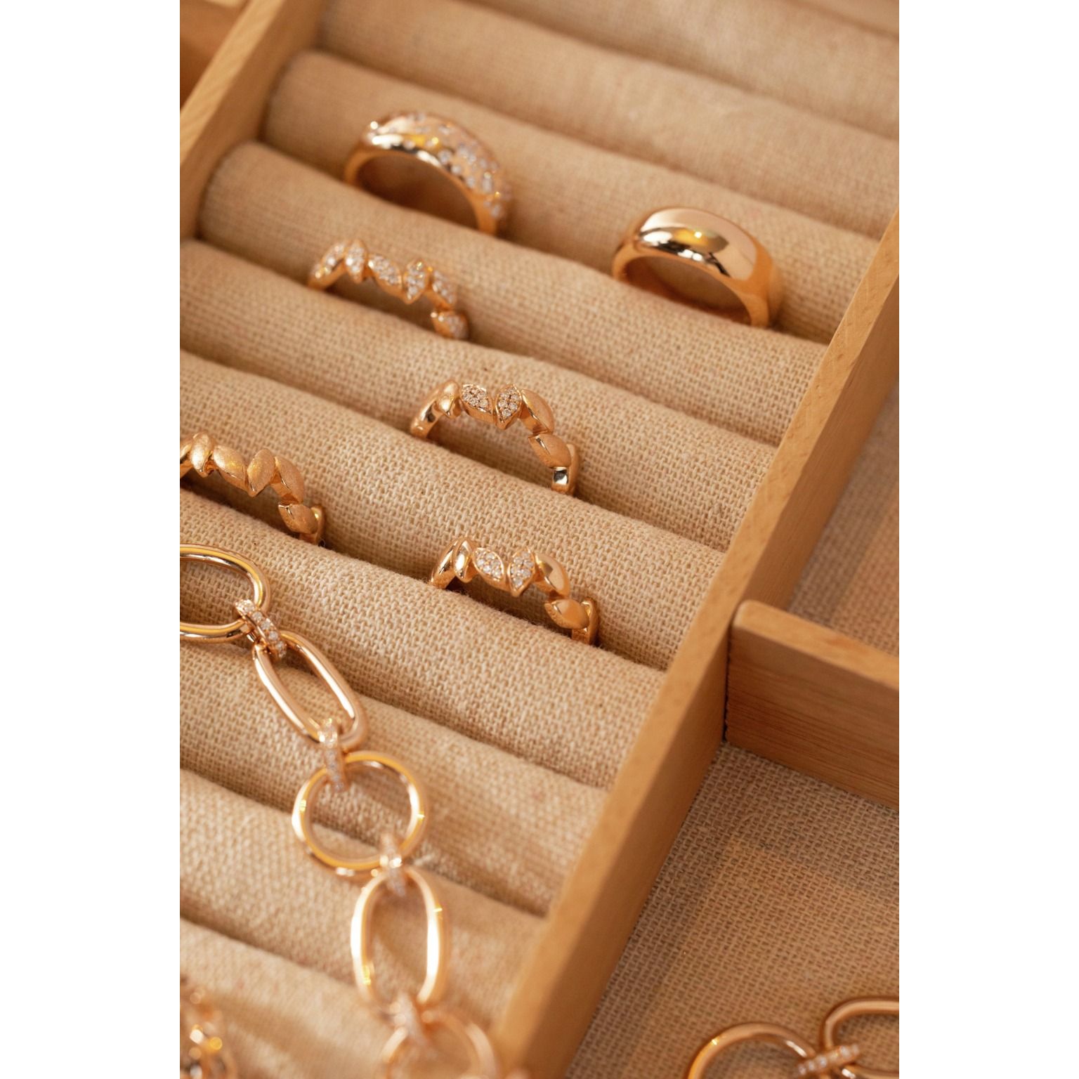 Twee van de blaadjes zijn sprankelend bezet met witte diamant, wat zorgt voor een verfijnde schittering die op een zachte manier het licht vangt. Een stijlvol ontwerp dat moeiteloos past bij zowel casual als feestelijke outfits.