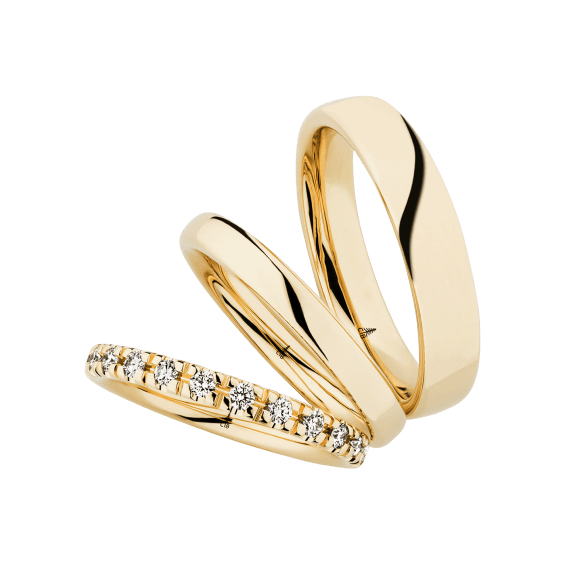 Alle modellen zijn leverbaar in 14karaat / 18karaat Geel-Wit-Roségoud en Platina met een prachtige gravure welke Christian Bauer onder service in de ringen zet.