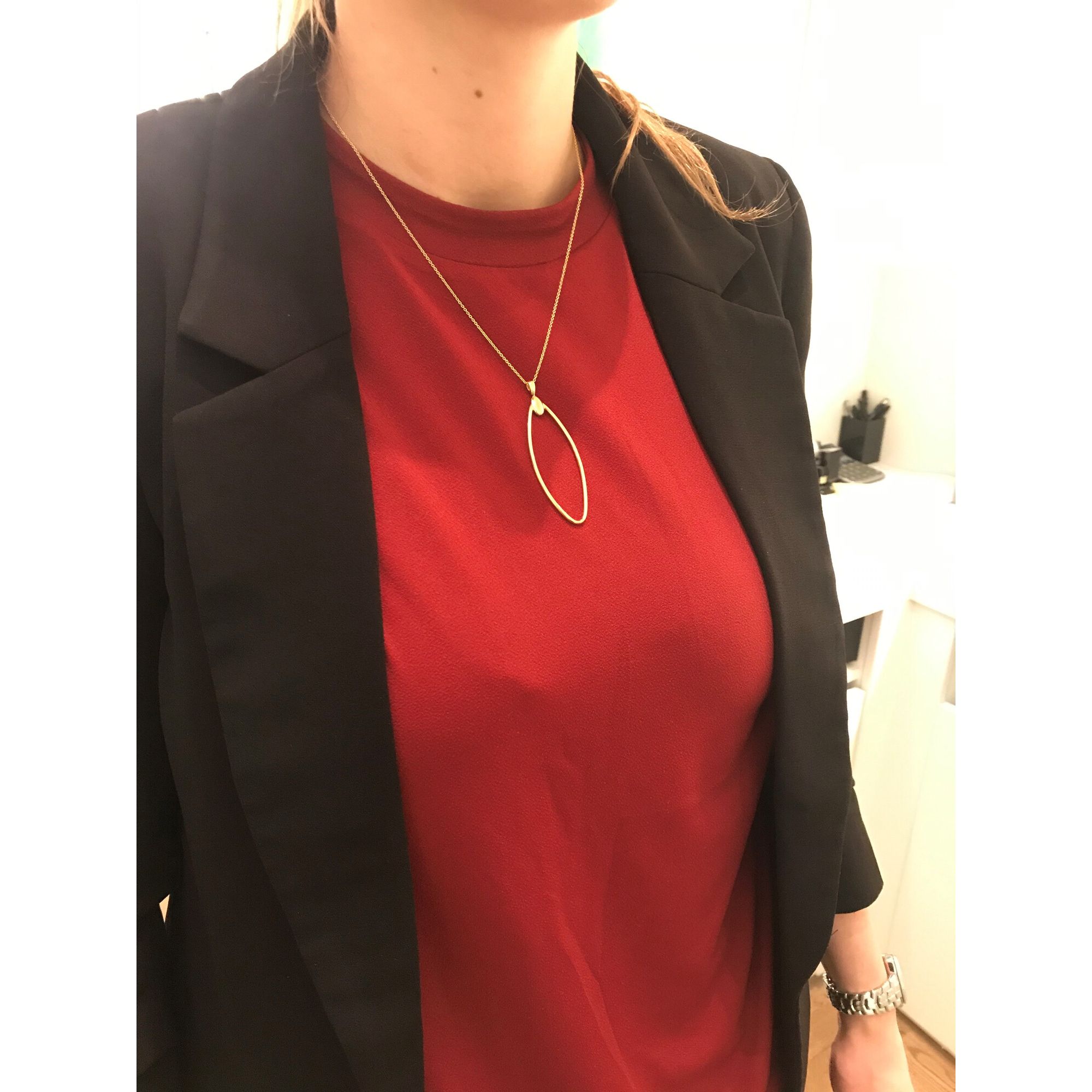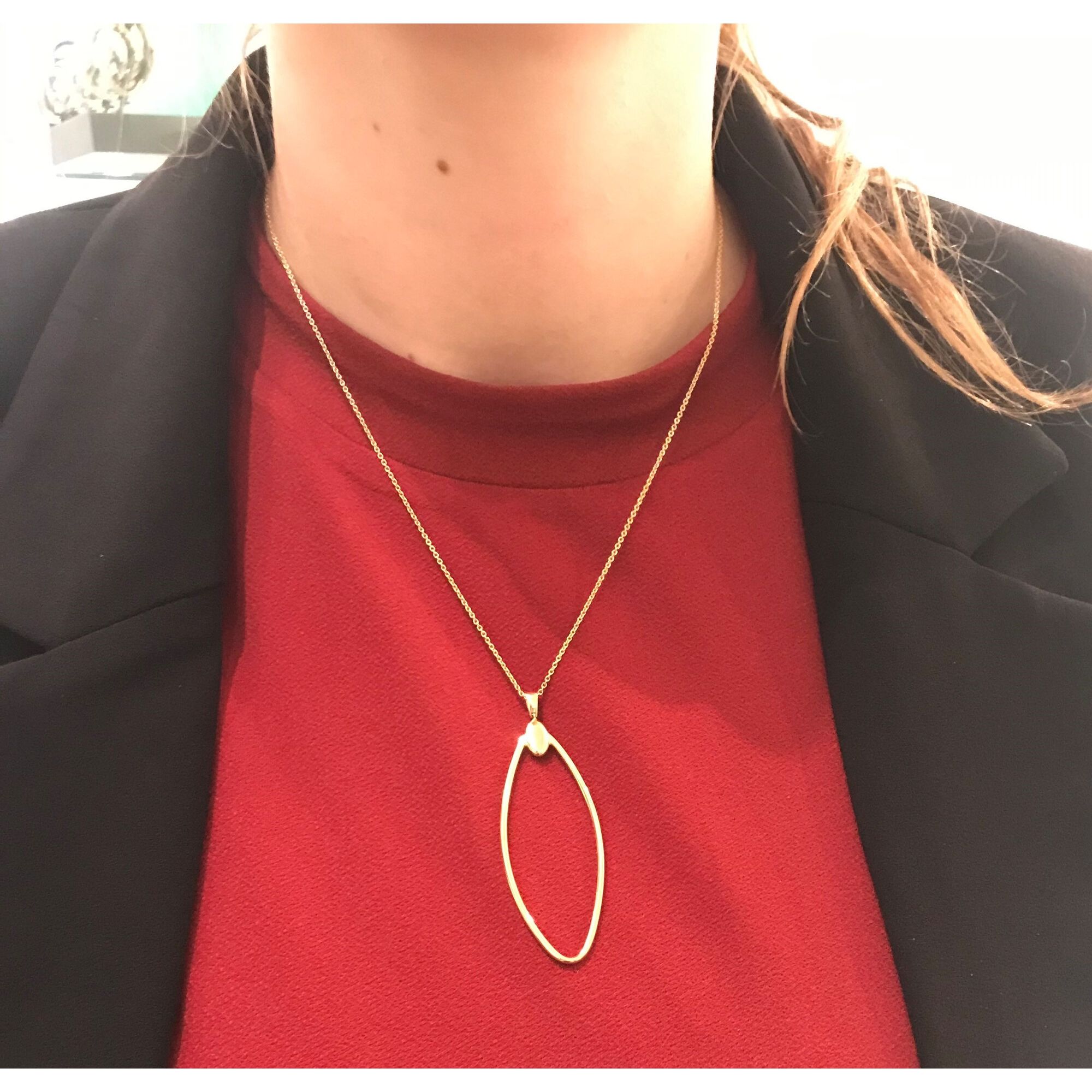 Dit Dot collier met hanger is vervaardig van 14 karaat geelgoud en heeft een lengte van 45cm. De stijlvolle ovale hanger is hoogglans gepolijst.