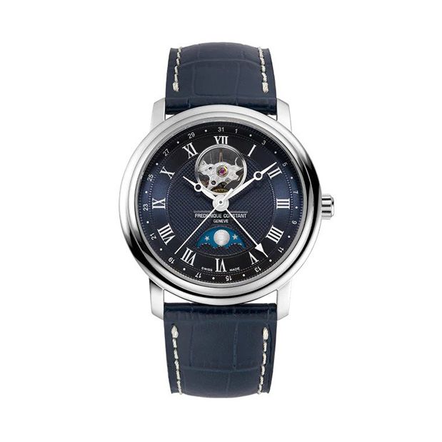 Deze Frederique Constant heeft een maanfase, datumwijzer en 38 uur gangreserve.