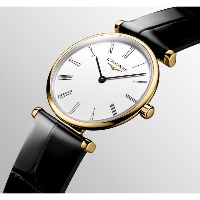 De Longines La Grande Classique L4.209.2.11.2 is een elegant dameshorloge met een verfijnde, slanke pvd gouden kast van 24mm en een klassieke witte wijzerplaat. Dit Zwitserse horloge combineert tijdloze stijl met precisie en heeft een luxe leren band. Perfect voor liefhebbers van verfijnde en minimalistische horloges.