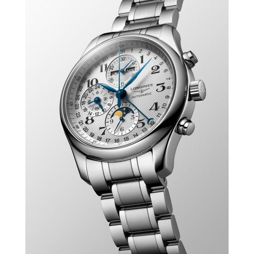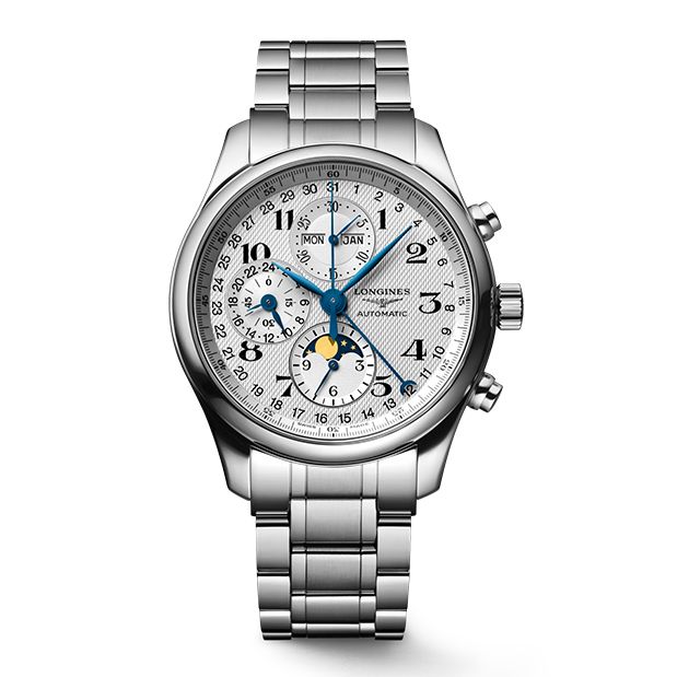Longines Master Collection met chronograaf, maanfase, dag-maand en datumaanduiding.