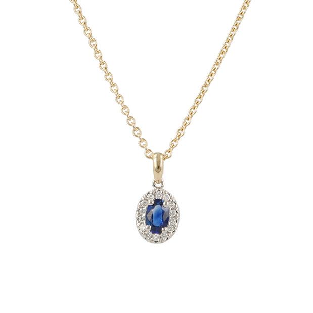 Lux | Pendant Lady Lux 14 Carat Yellow & White gold | Diamonds Sapphire Oval