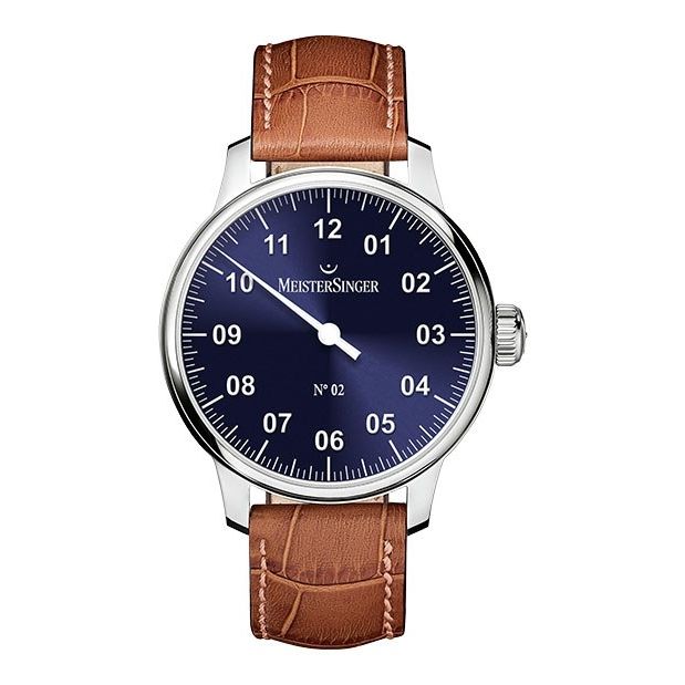 Meistersinger No.02 met één wijzer aanduiding en 46 uur gangreserve. Eventueel ook verkrijgbaar met vouwsluiting á €100,- klik hier om deze te bestellen
