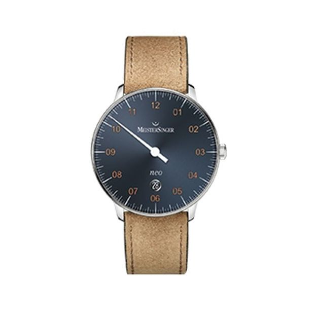 Meistersinger Neo met 1 wijzer aanduiding, datum en 38 uur gangreserve. Eventueel ook verkrijgbaar met vouwsluiting á €100,- klik hier om deze te bestellen.