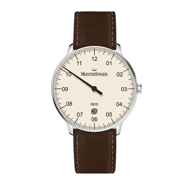 Meistersinger Neo Plus met 1 wijzer aanduiding, datum en 38 uur gangreserve. Eventueel ook verkrijgbaar met vouwsluiting á €100,- klik hier om deze te bestellen