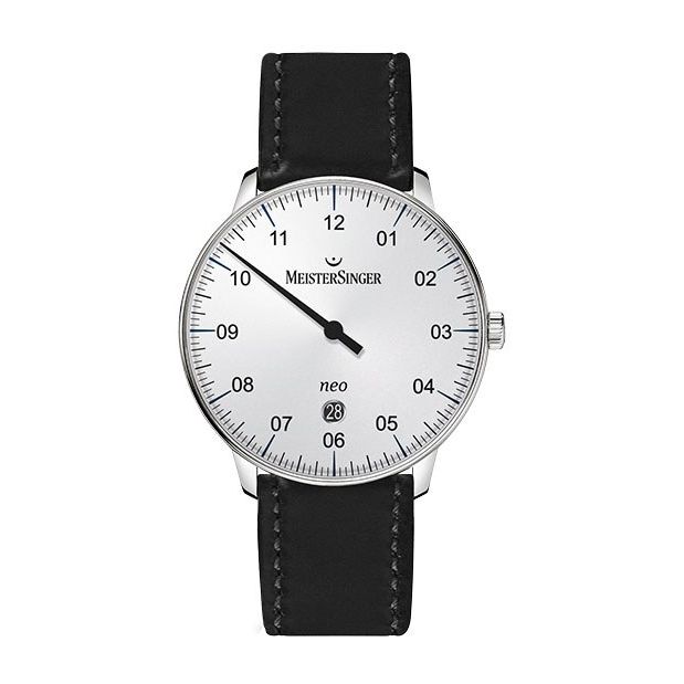 Meistersinger Neo Plus met 1 wijzer aanduiding, datum en 38 uur gangreserve. Eventueel ook verkrijgbaar met vouwsluiting á €100,- klik hier om deze te bestellen