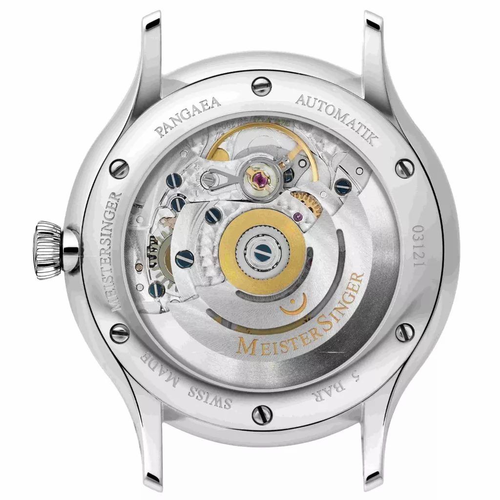 Meistersinger Pangaea Day-Date met één wijzer, dag/datumaanduiding en 38 uur gangreserve.