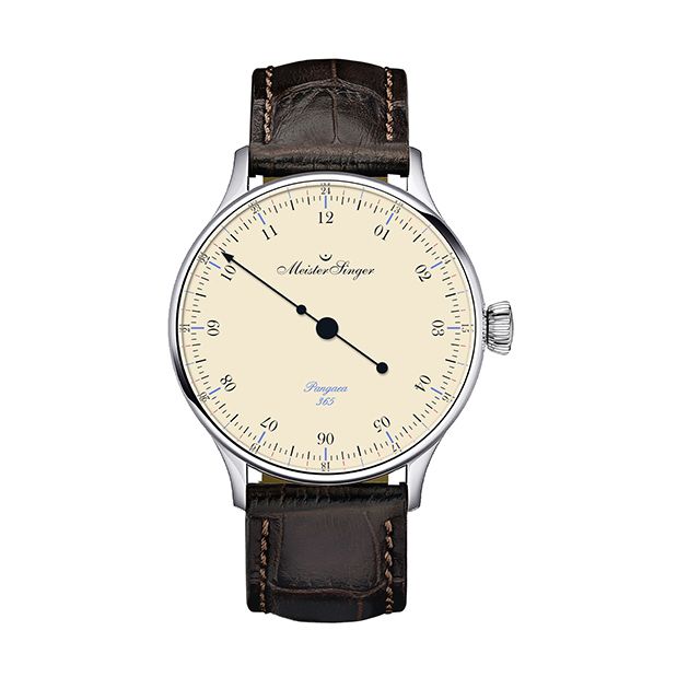 Meistersinger Pangaea 365 met één wijzer heeft 38 uur gangreserve. Eventueel ook verkrijgbaar met vouwsluiting á €100,- klik hier om deze te bestellen