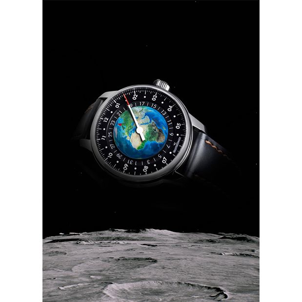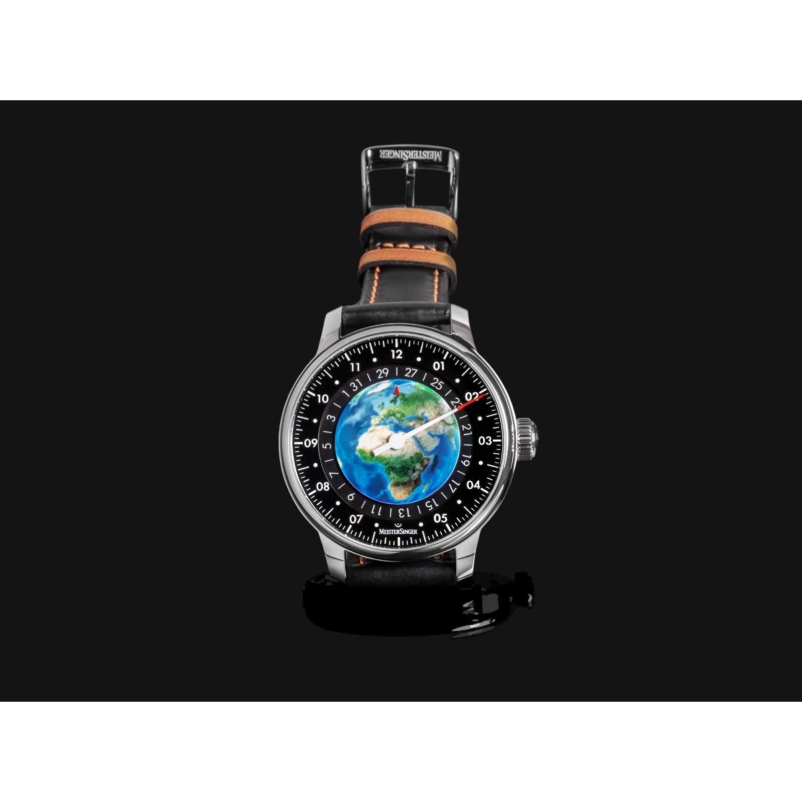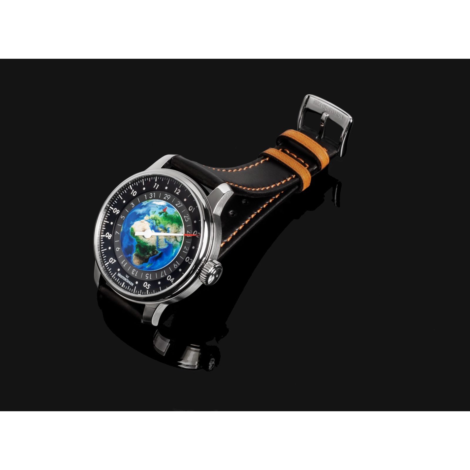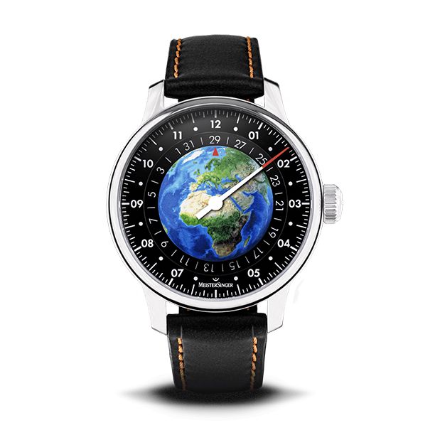 Meistersinger Planet Earth Limited edition met 1 wijzer ongeveer 42 uur gangreserve, Eventueel ook verkrijgbaar met vouwsluiting á €100,- klik hier om deze te bestellen