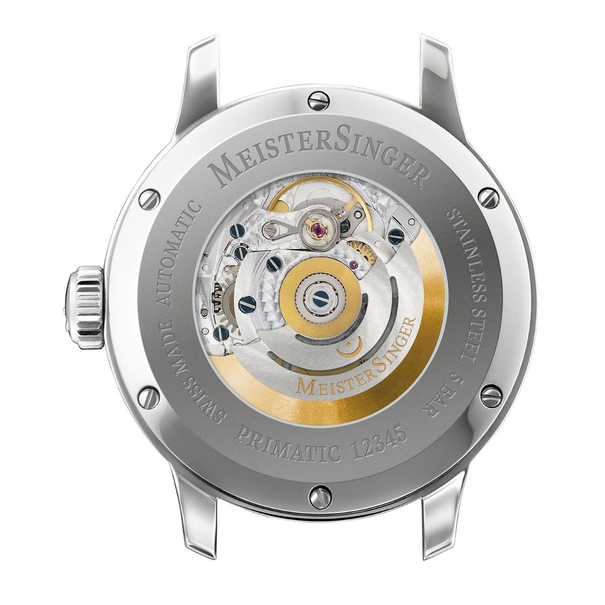 Deze Meistersinger Primatic heeft een datum en gangreserve aanduiding (38 uur gangreserve)
