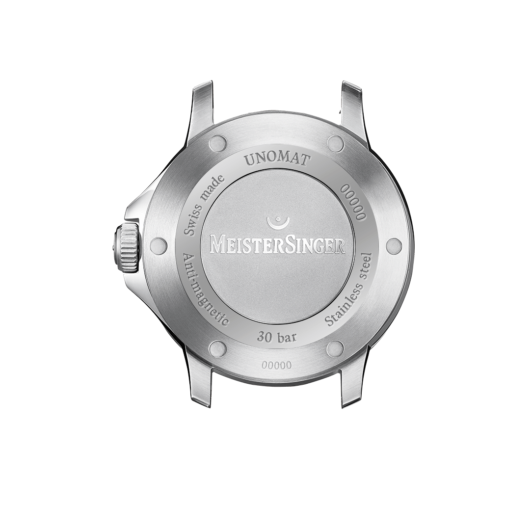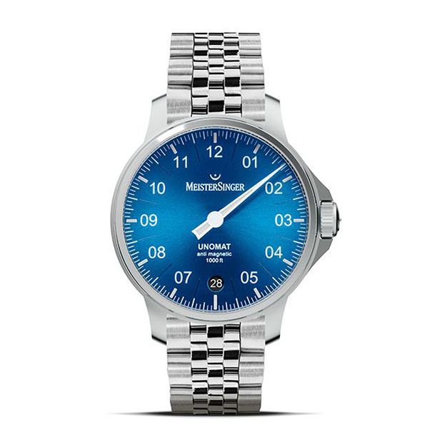 Meistersinger Unomat is ongeveer 300 gauss (tot 24.000 A/m) antimagnetisch, datumaanduiding en 38 uur gangreserve.