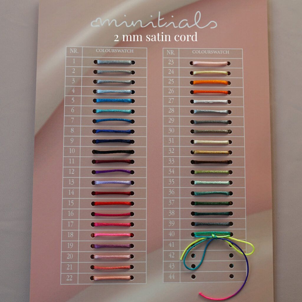 - Satijnen koordjes: 3 stuks, zie afbeelding voor de kleuren