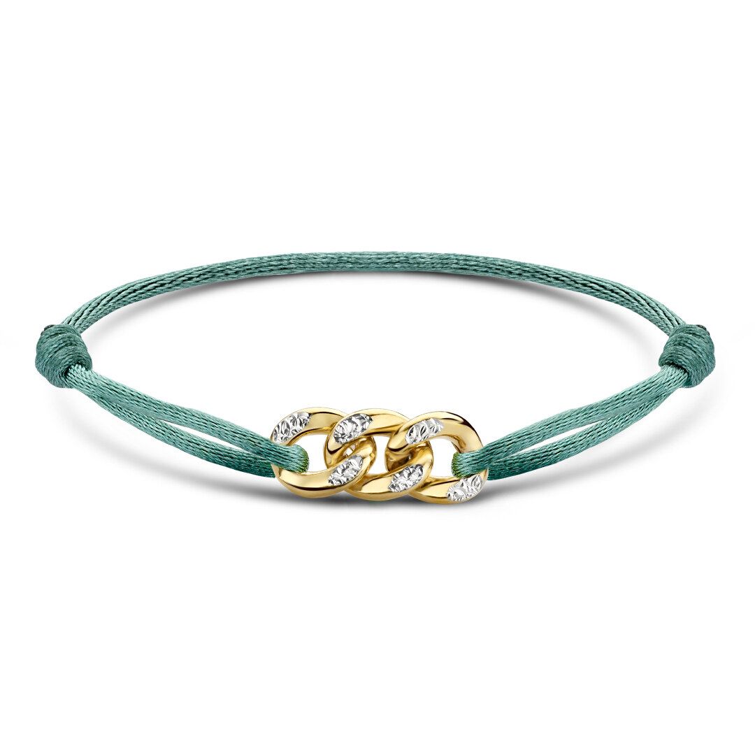 De Minitials Drie Unchained Satijn V2 Armband heeft drie schakels in 18 karaat geel goud of rose goud met een touch witgoud.