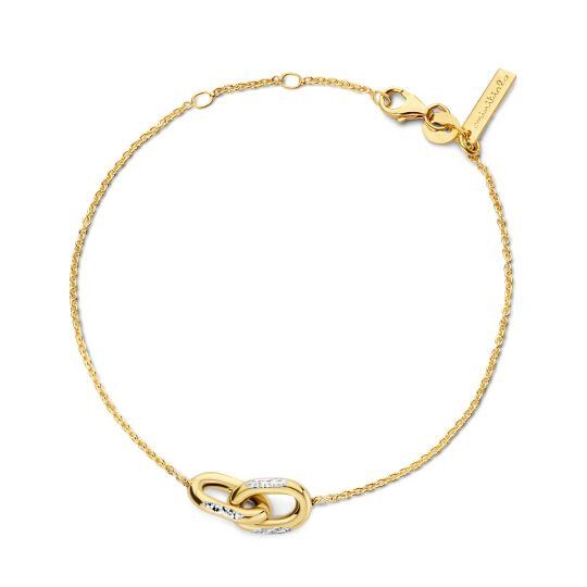 De Minitials Twee Unchained Armband heeft twee schakels in 18 karaat geelgoud, met een touch witgoud.