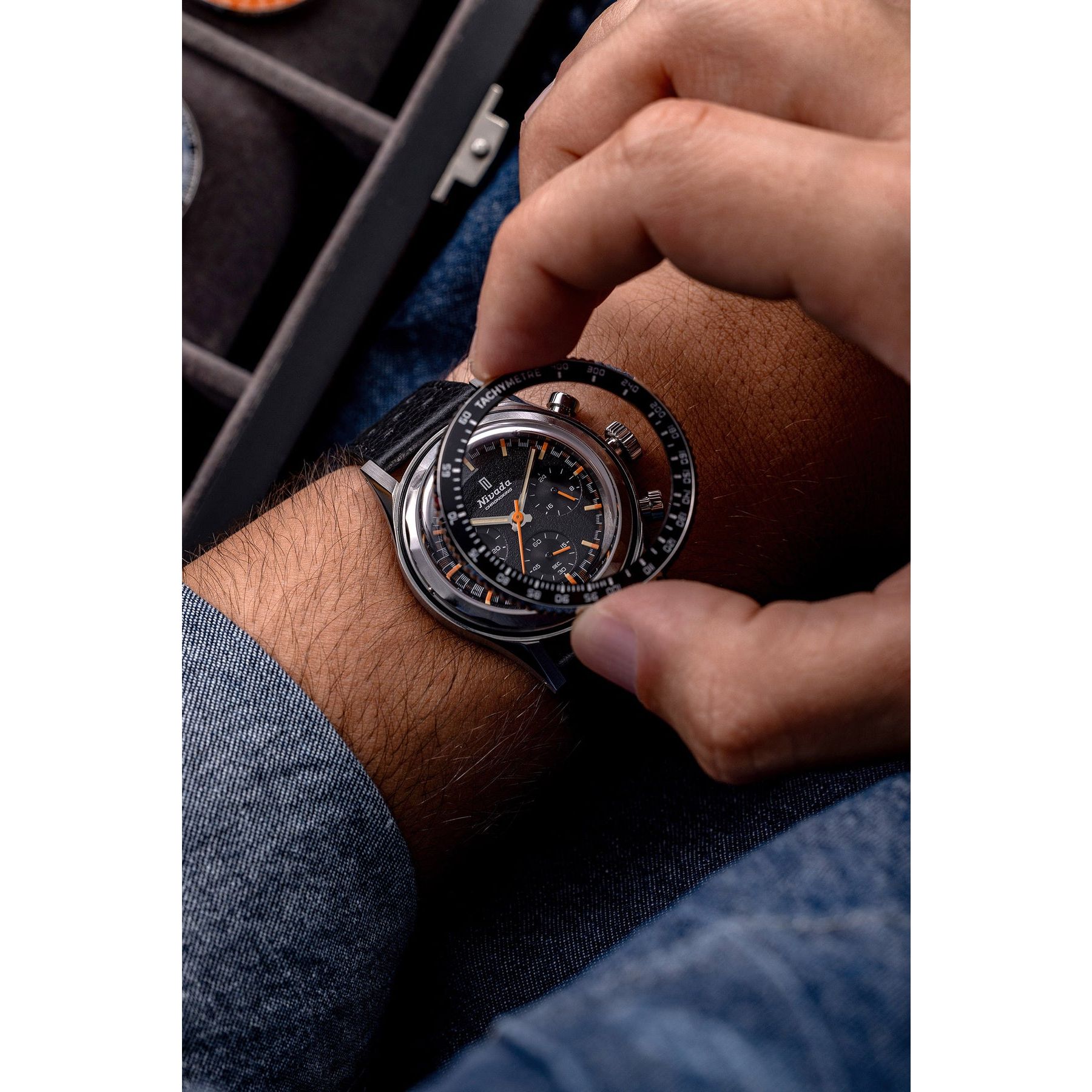 Maak kennis met de Nivada Grenchen Interchangeable Bezel Kit, een innovatieve stap in horloge-personalisatie en eenvoud. Met dit baanbrekende systeem kun je je Chronoking Mecaquartz direct transformeren door te kiezen voor een Kleur Tachymeter-bezel, en dat alles zonder gereedschap.