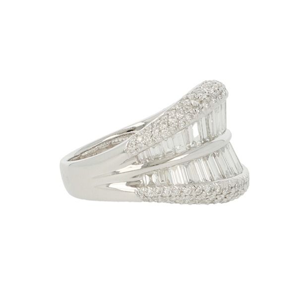Unique Piece | Platinum Ring | Diamonds Baguettes - Brilliant