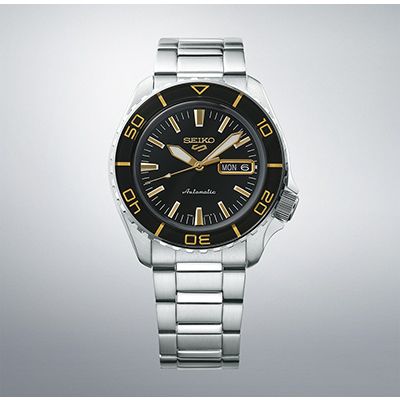 De Seiko 5 Sports viert 55 jaar sportief horloge-erfgoed met een frisse, moderne uitstraling. De zwarte wijzerplaat met geelgouden indexen geeft het horloge een stoere en luxe uitstraling. Dankzij de robuuste stalen kast en band is het bestand tegen dagelijks gebruik én avonturen. Het automatische uurwerk met dag- en datumaanduiding combineert betrouwbaarheid met stijl.