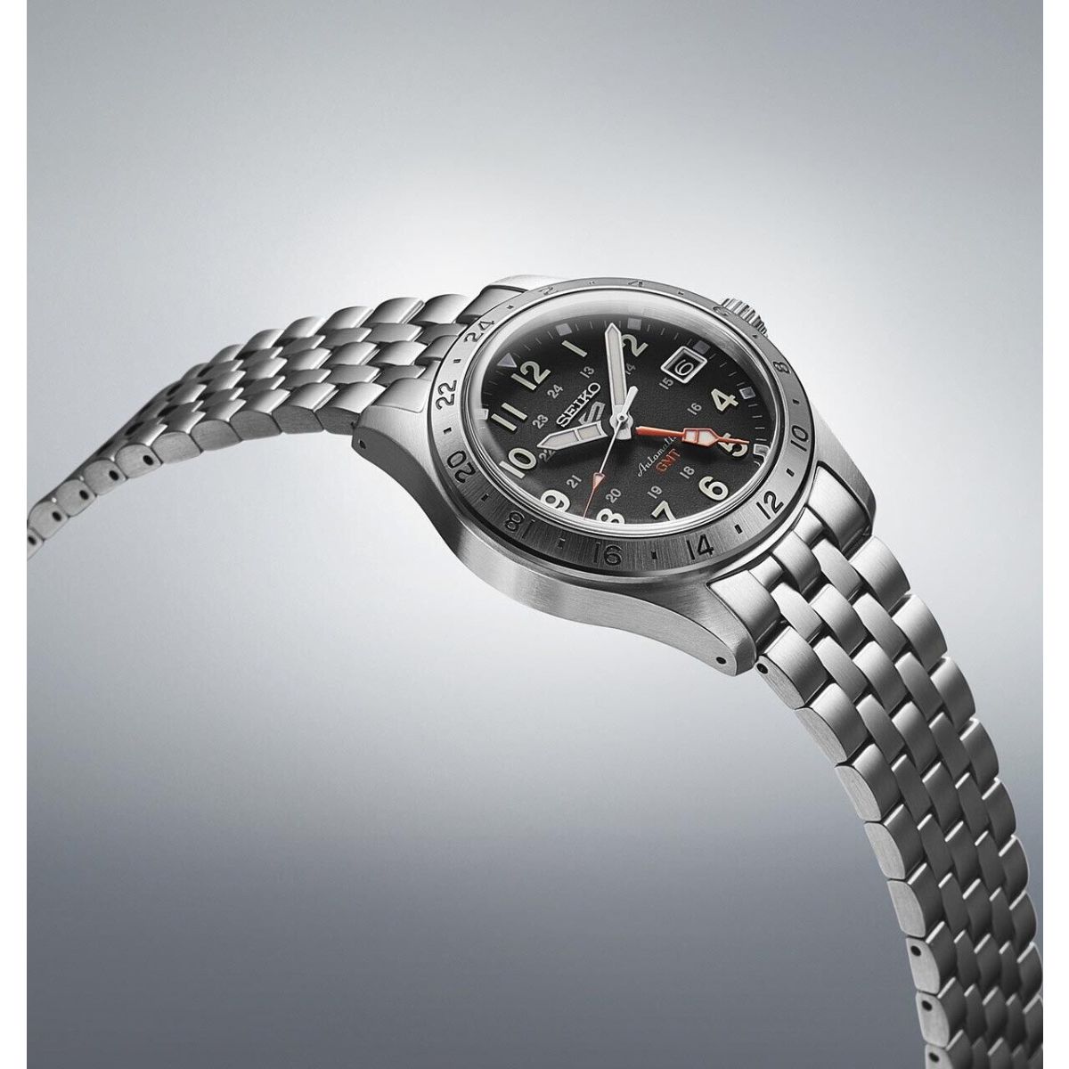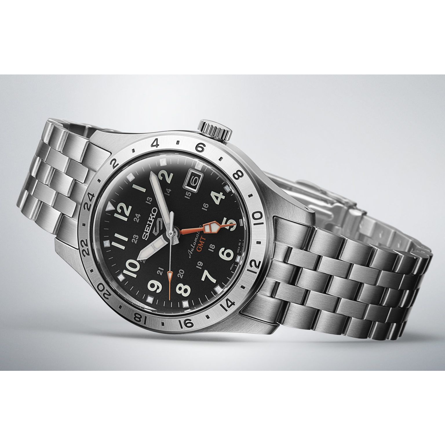 Seiko 5 Sports met datum, 41 uur gangreserve en GMT functie.