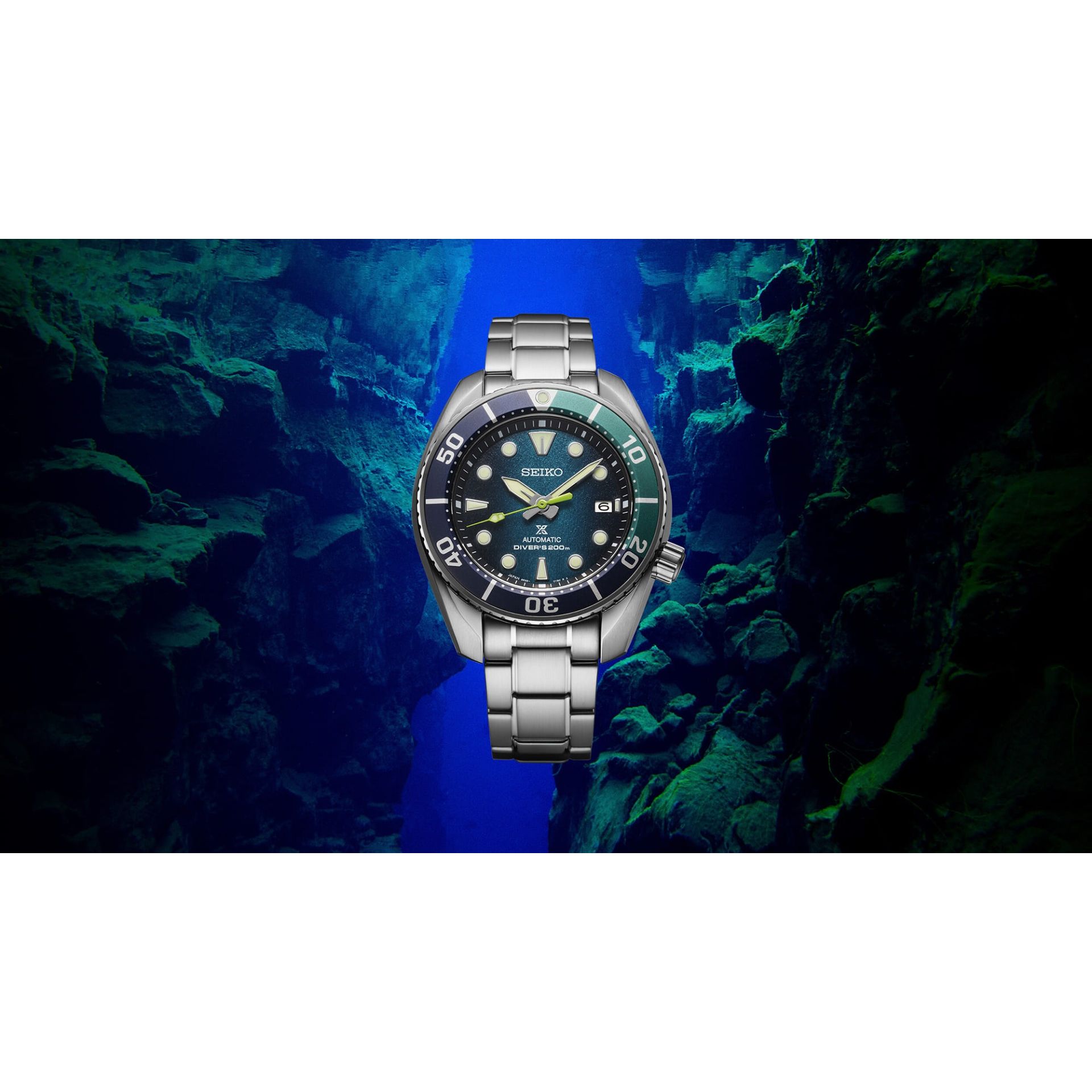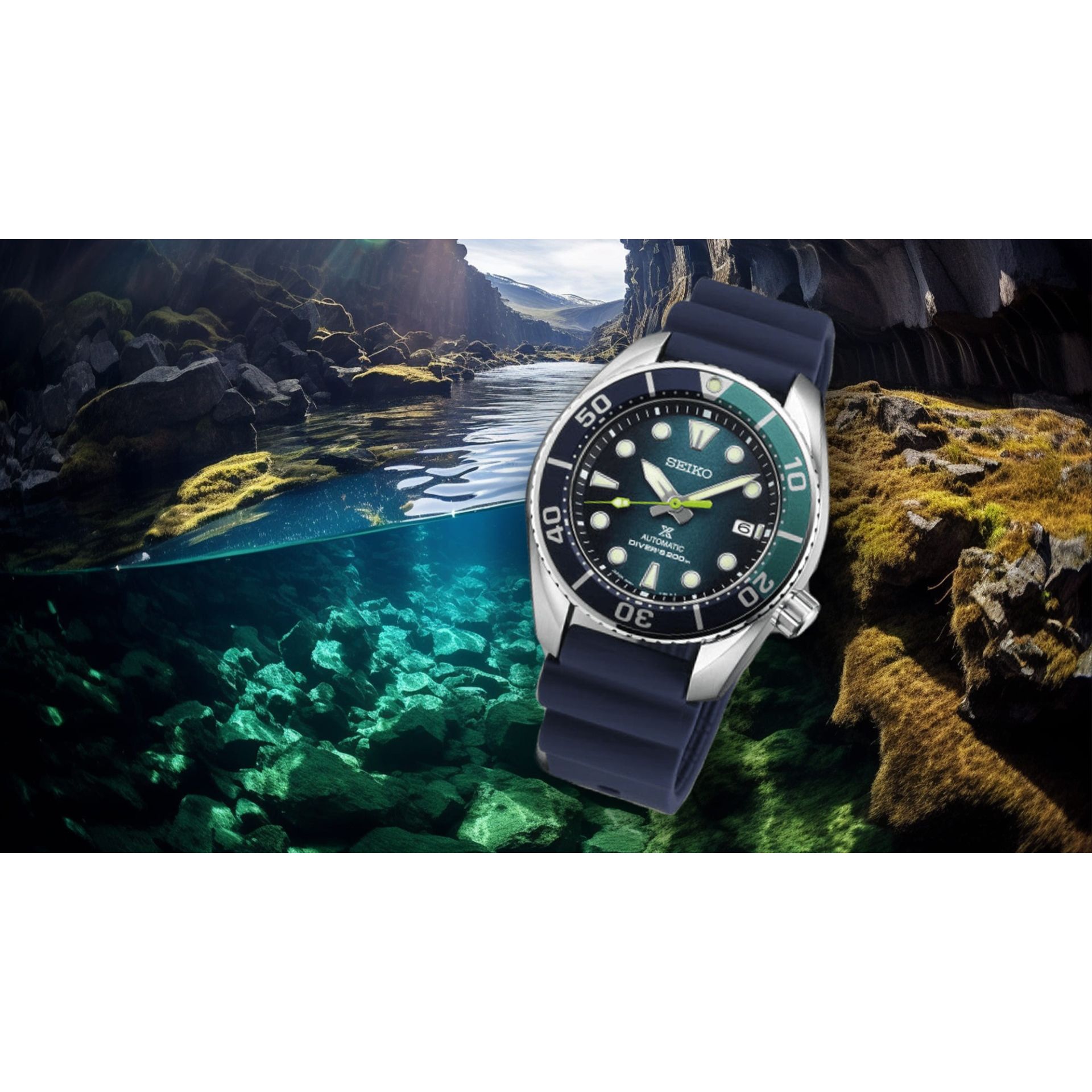 De Seiko SPB431 'European Limited edition' is geïnspireerd op de Silfra, de wereldberoemde met water gevulde kloof in het Thingvellir National Park in IJsland. De uitdagende spirit van Prospex (Keep Going Forward) wordt weerspiegeld in de uitdagingen waarmee duikers in Silfra worden geconfronteerd, terwijl ze de bikkelharde en steenkoude omgeving verkennen waar zelfs waterorganismen niet in kunnen overleven. De wijzerplaat kenmerkt zich door een subtiel kleurverloop die doet denken aan een oceaanstraat. Dit horloge is buitengewoon robuust, met een waterdichtheid van 200 meter en LumiBrite op de wijzers, indexen en bezel. Daardoor is dit horloge ideaal voor de liefhebbers van het duiken en de natuur!