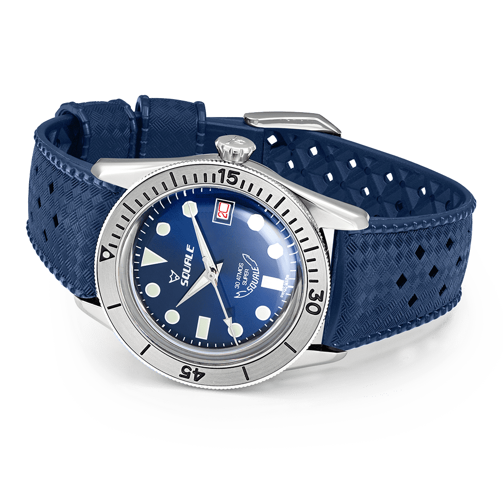 Squale Sub-39 met datumaanduiding, staal lunette en 38 uur gangreserve.