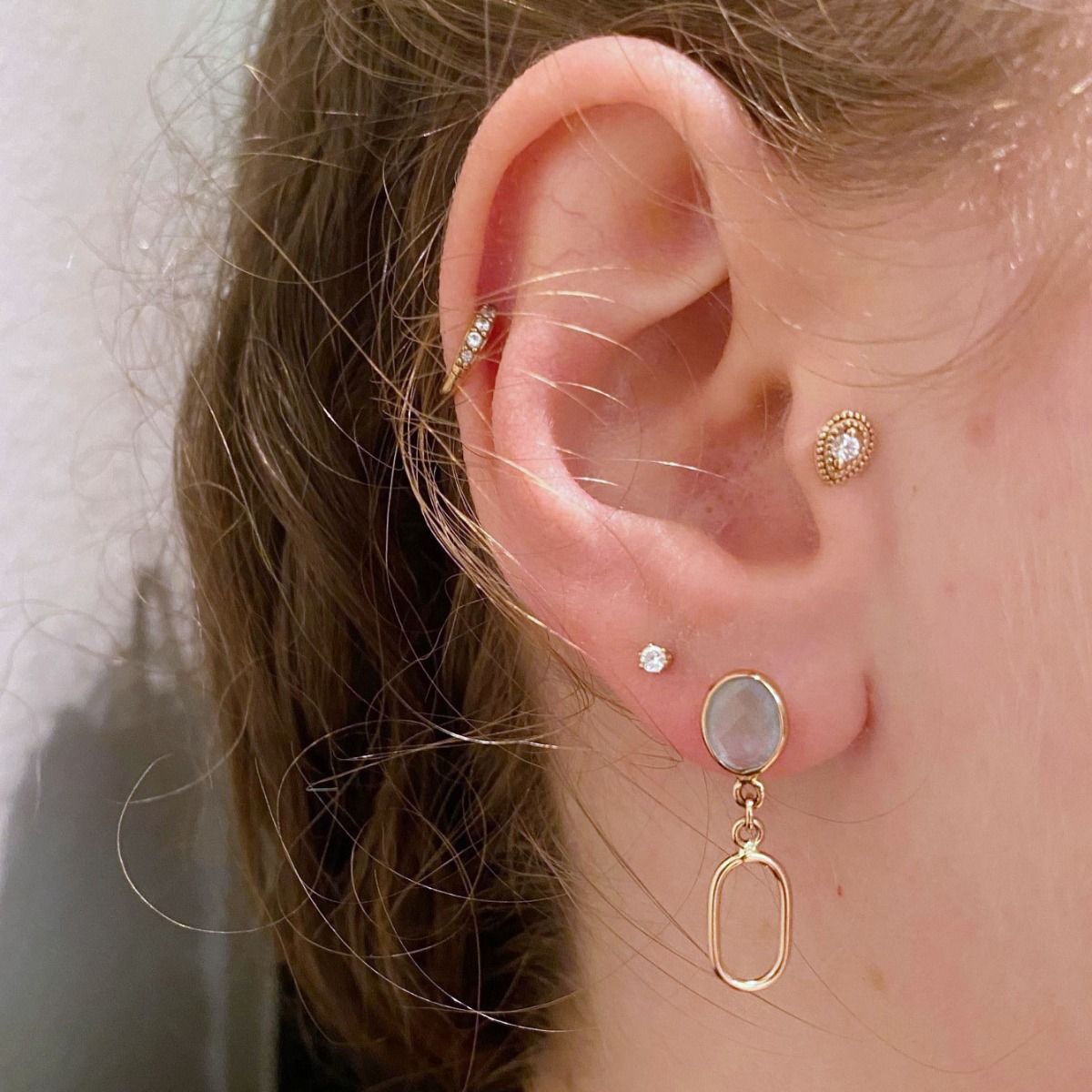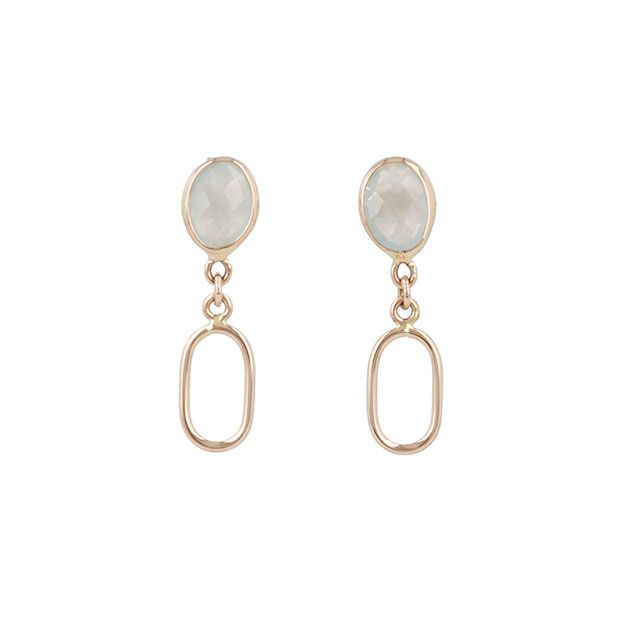 Sundrops | Earrings 14 Carat Pink gold | Aquamarine Milky & Link