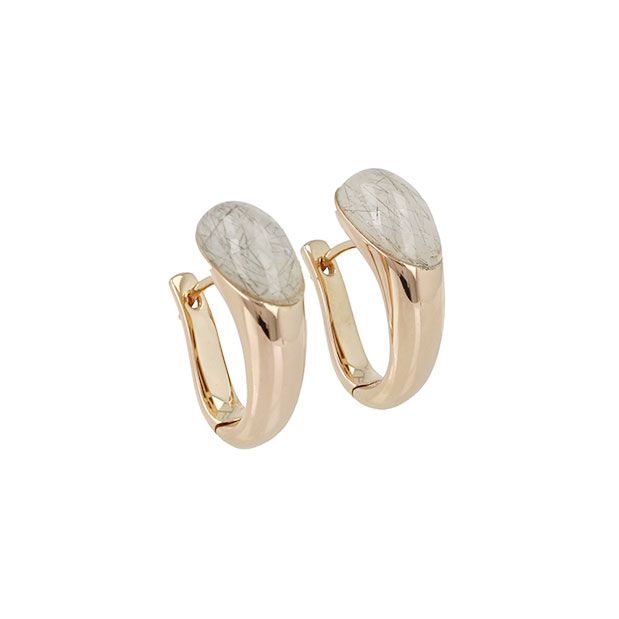 Sundrops | Earrings 14 Carat Pink Gold | Quartz & Rutilated Quartz Doublets