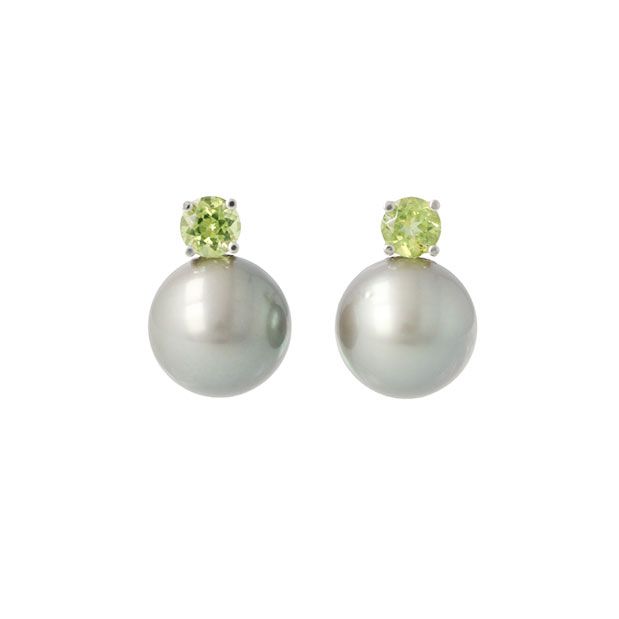 Sundrops | Ear Studs White Gold | Pearl & Peridot