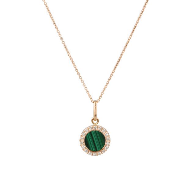 Sundrops | Necklace 14 Carat Pink Gold | Diamond Malachite