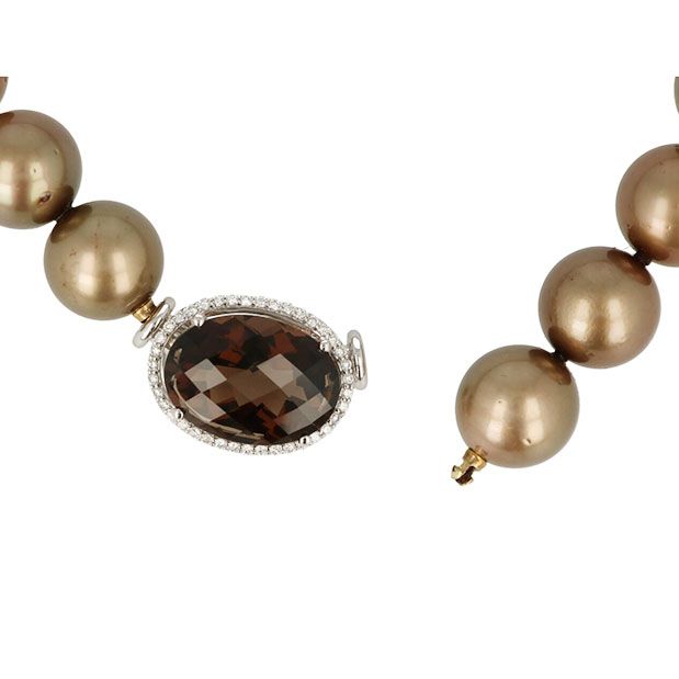 Sundrops | Necklace White Gold | Pearl & Smoky Quartz
