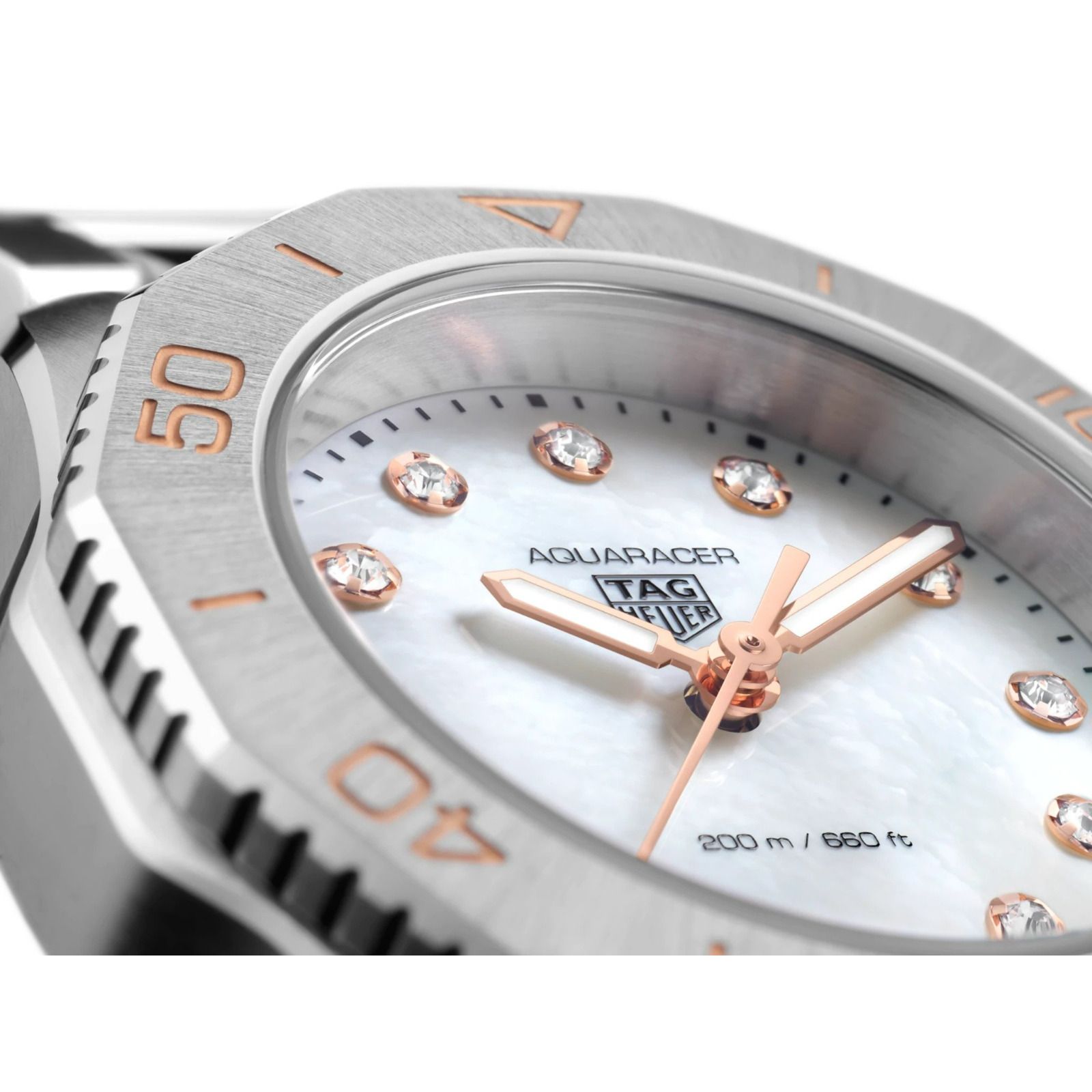 TAG Heuer Aquaracer met parelmoer wijzerplaat.