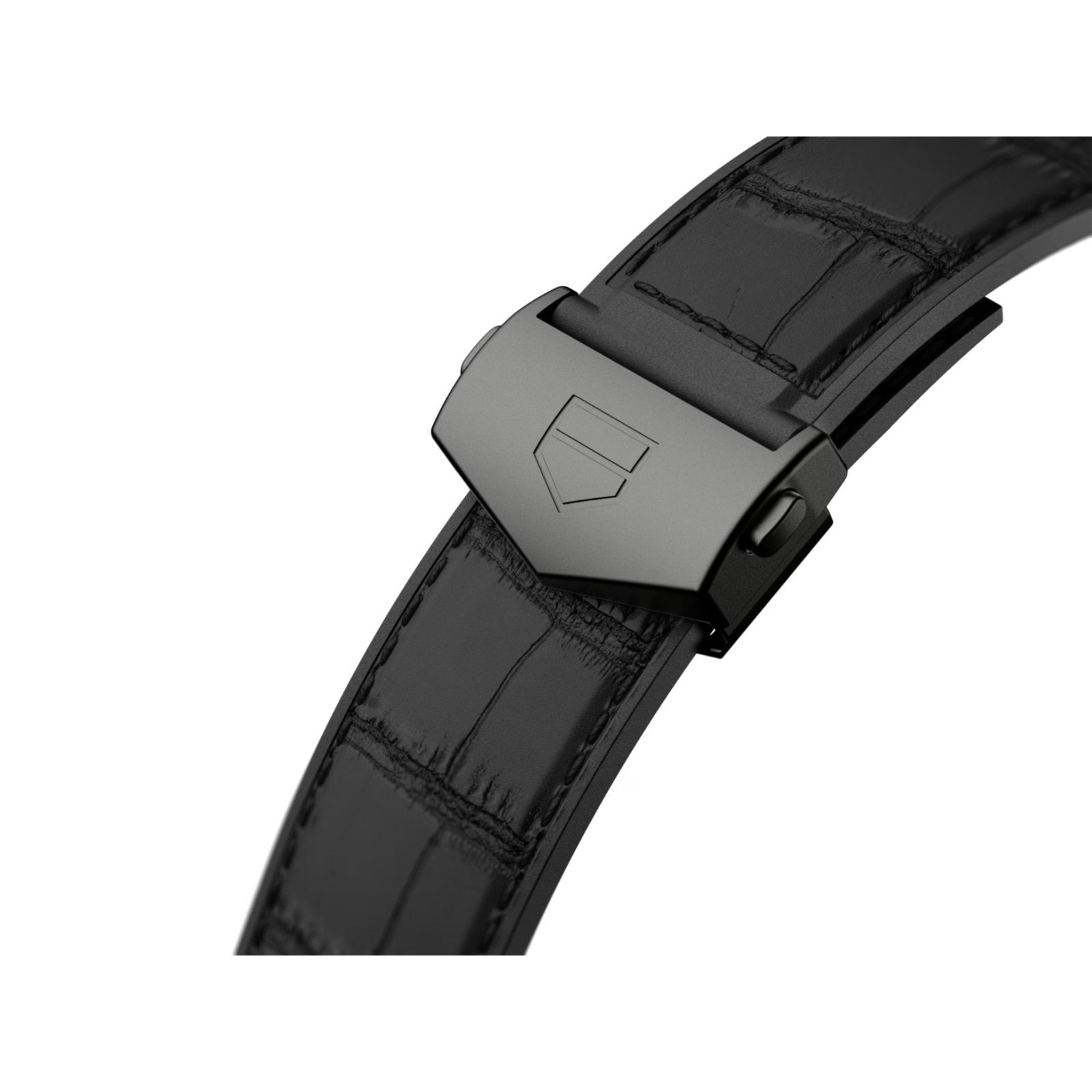 - Materiaal: Stalen kast met zwarte PVD coating en 18K roségouden kastpoten, rubber en alligatorlederen band met titanium vouwsluiting