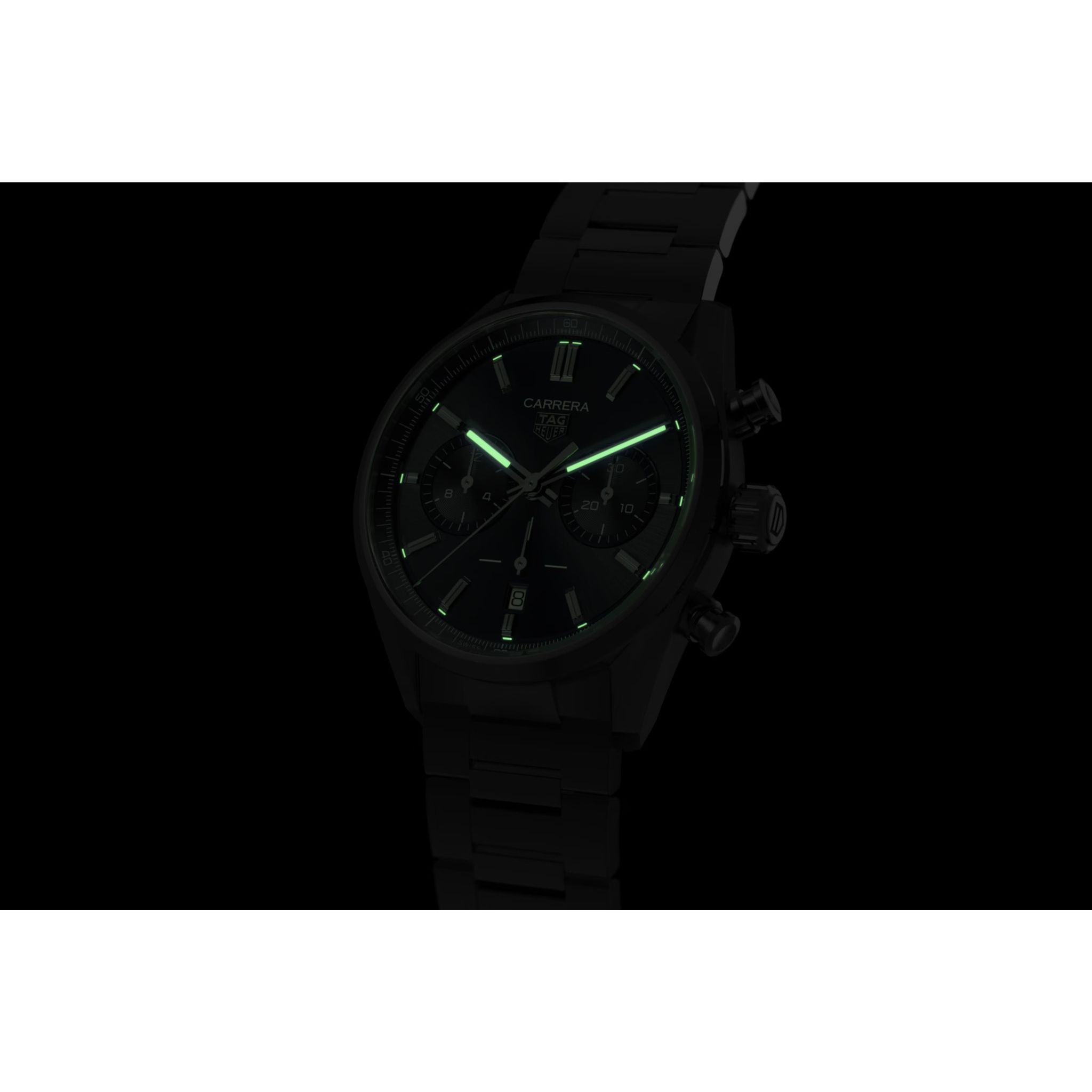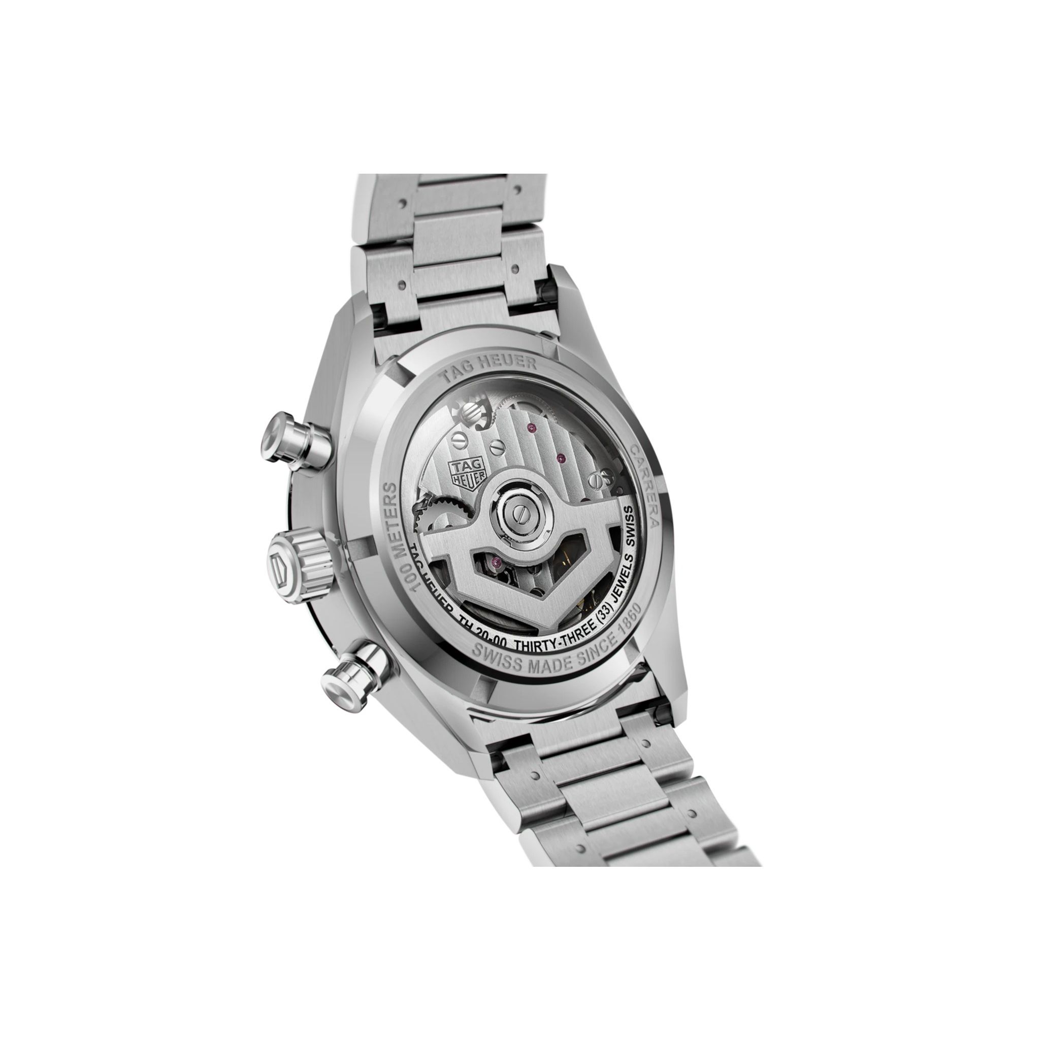 TAG Heuer Carrera Calibre Heuer 02 heeft een datumaanduiding, chronograaf en een 80 uur gangreserve.