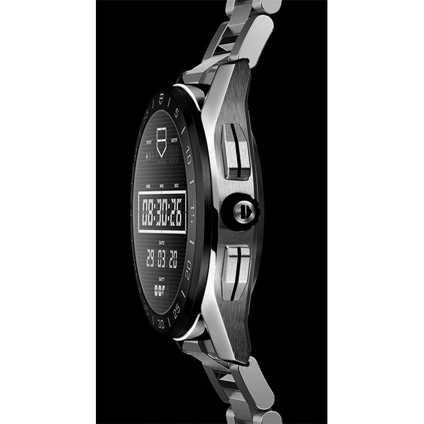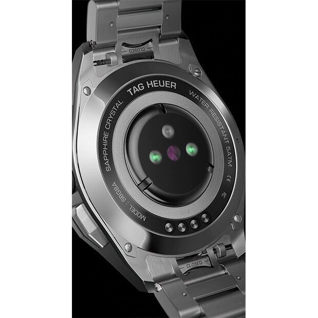 TAG Heuer Connected met hartslag sensor, laad 80% op in 1uur en 30 minuten.