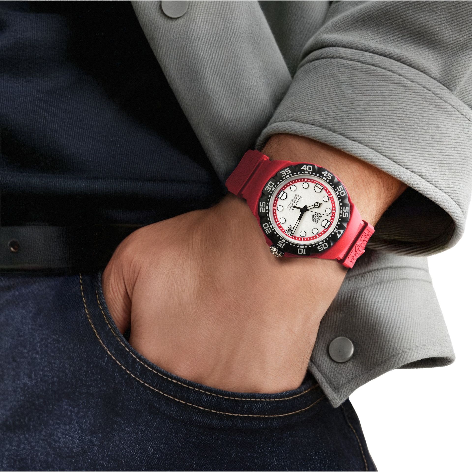 De TAG Heuer Formula 1 Solargraph (38 mm) is een opvallend horloge dat direct in het oog springt dankzij de rode TH-Polylight kast. Dit horloge is gemaakt voor wie durft, en verenigt een krachtige urban stijl met de nieuwste zonne-energie technologie. Een uitgesproken statement piece binnen de iconische TAG Heuer Formula 1 collectie.