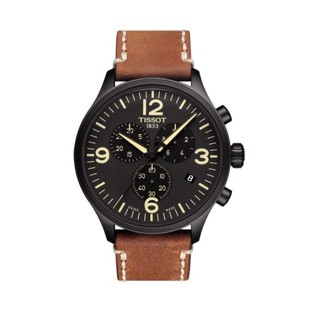 - Materiaal: Stalen kast met zwart PVD en cognac lederen band
