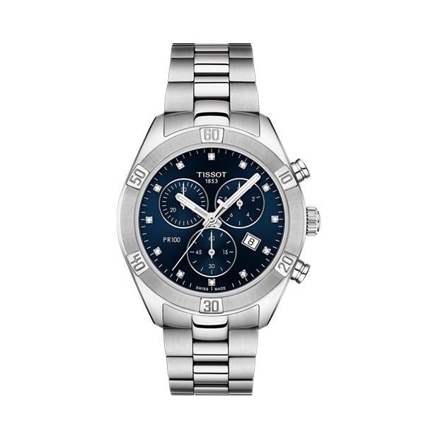 Tissot PR 100 Sport Chic Chronograph met een datumaanduiding en chronograaf.