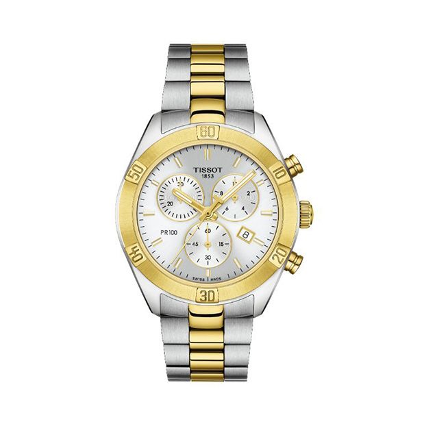 Tissot PR100 Sport Chic Chronograph met een datumaanduiding en chronograaf.