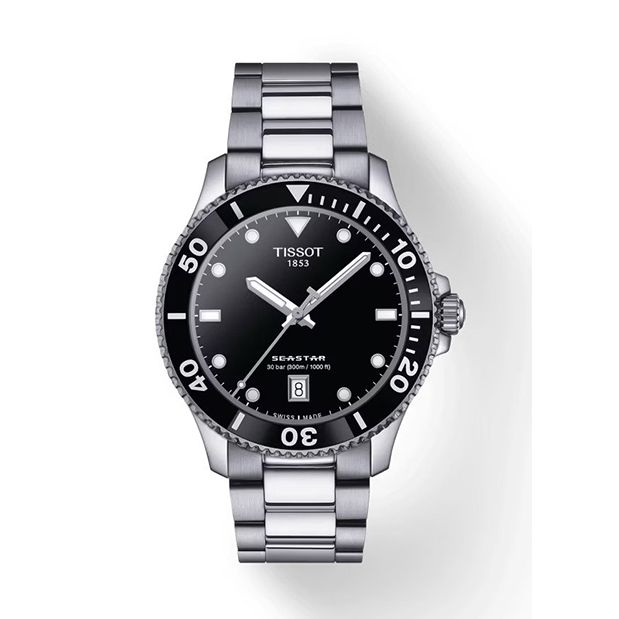Tissot Seastar 1000 met een datumaanduiding en duikers lunette.