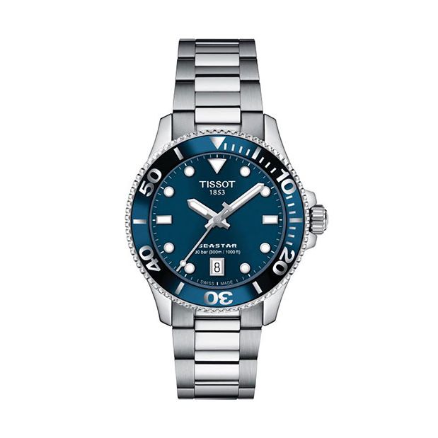 Tissot Seastar 1000 met een datumaanduiding en duikers lunette.