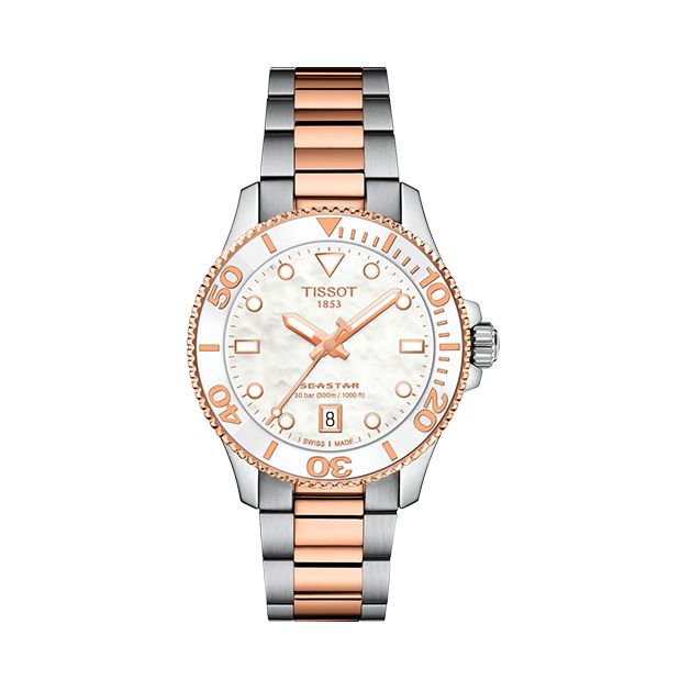Tissot Seastar 1000 met een datumaanduiding en duikers lunette.